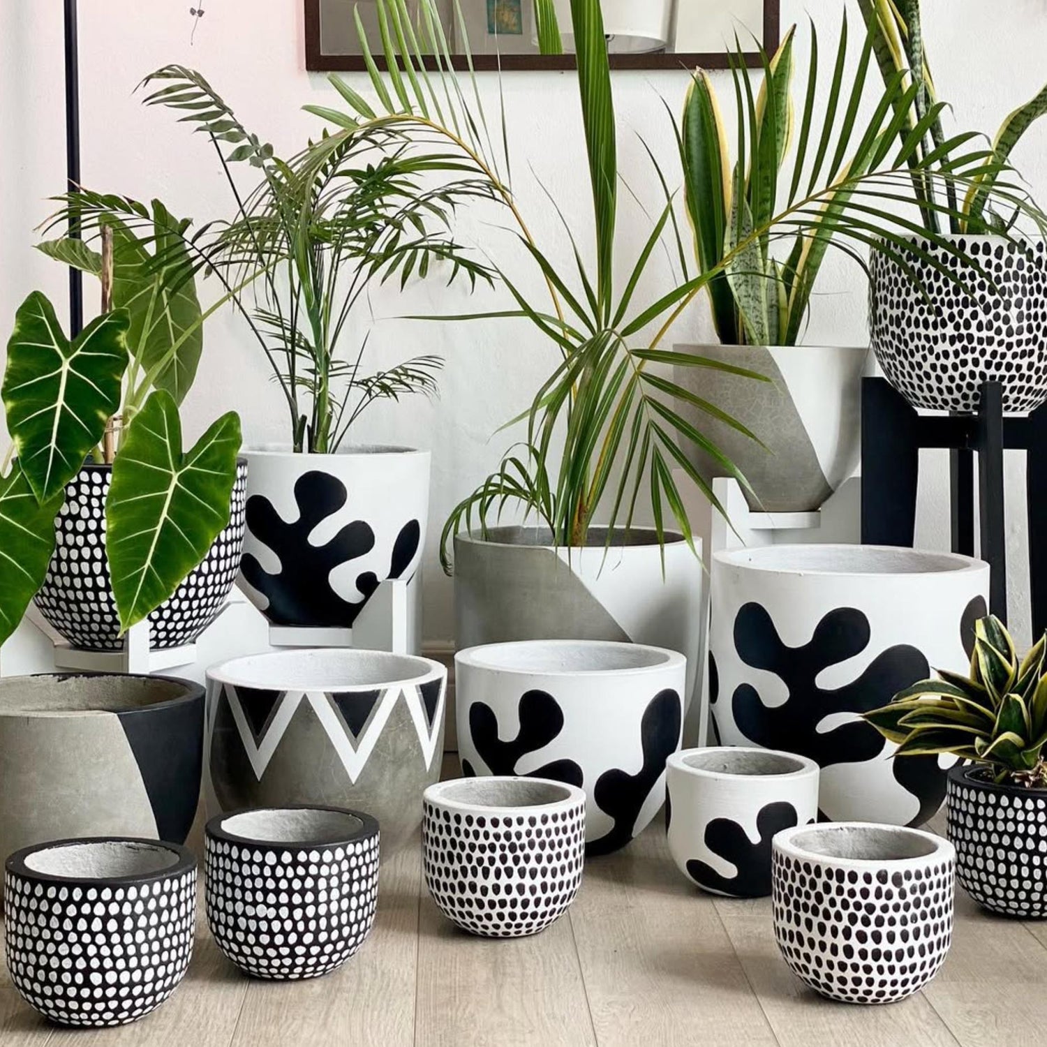 Bring some artistic flair to your potted plants with hand painted concrete pots! Elegant and timeless, these designs integrate well with all types of décor: breathtaking Boho, Caribbean casual, modern minimalist and more.
